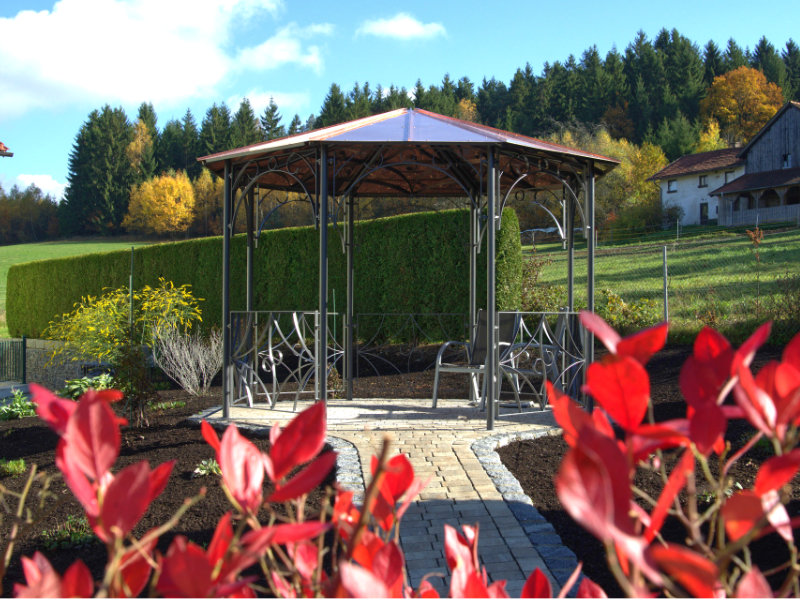 Vom Wintergarten aus haben Sie direkten Blick auf unseren Garten und das Pavillon